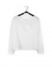 Blusa lisa con silueta ligeramente acampanada y escote pico con detalle de volantes en la parte de atrás. Manga larga con puño y cierre de un botón.