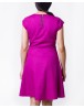 Vestido entallado a la cintura, disponible en color fúcsia y azul eléctrico, cierre invisible lateral y cremallera de decoración en la parte posterior.